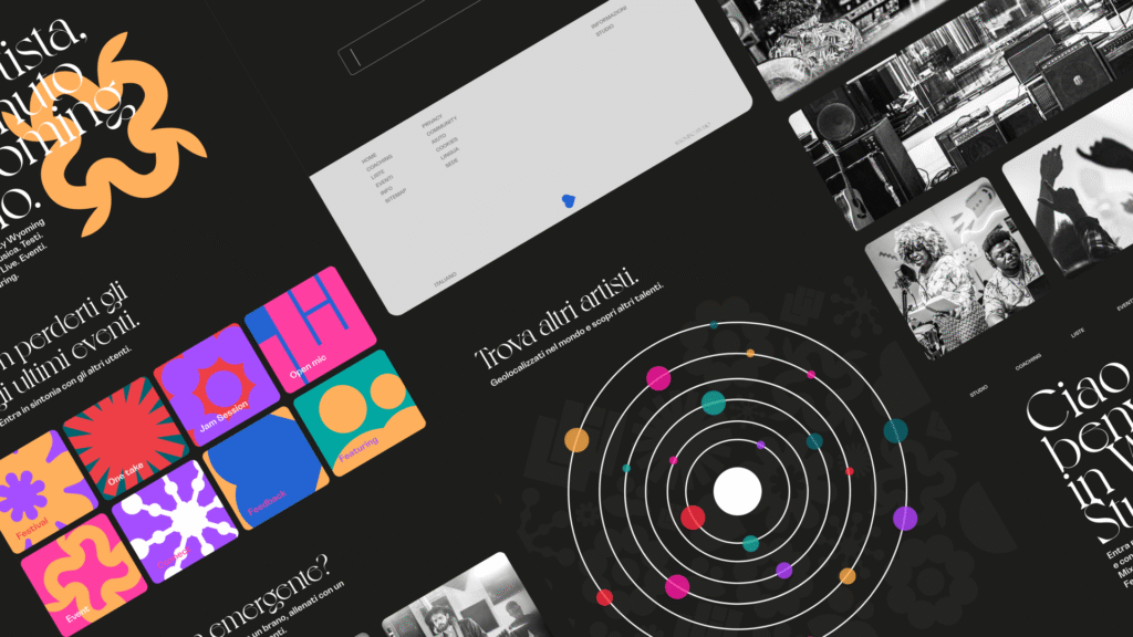 Iconografia invadente e colorata, logo dal font graziato e poco versatile, immagini saturate e ipercontrastate creano un mondo ben distinto, fatto di collaborazioni e confronti, senza confini e vincoli, tutto è ben posizionato ma sembra caotico, un disordine logico, di icone elementari e banali che sostituendo le parole sono in grado parlare a tutti, proprio come la musica fa.